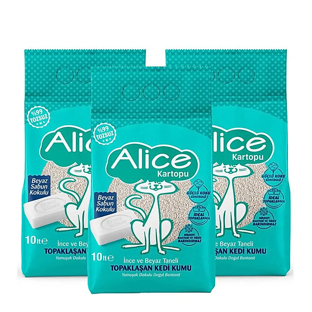 Alice Kartopu İnce Taneli Kedi Kumu/Beyaz Sabun Kokulu 3×10 lt.
