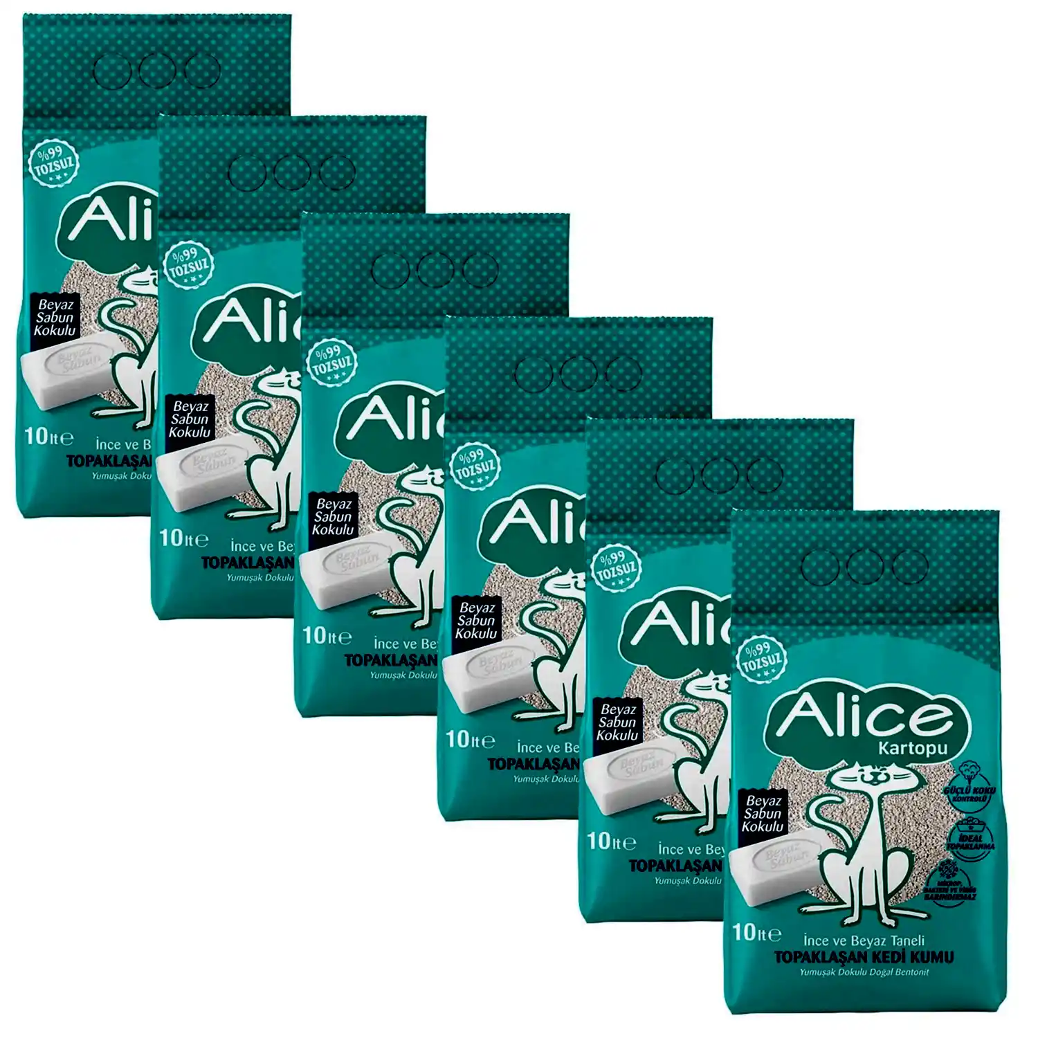 Alice Kartopu İnce Taneli Kedi Kumu/Beyaz Sabun Kokulu 6×10 lt.
