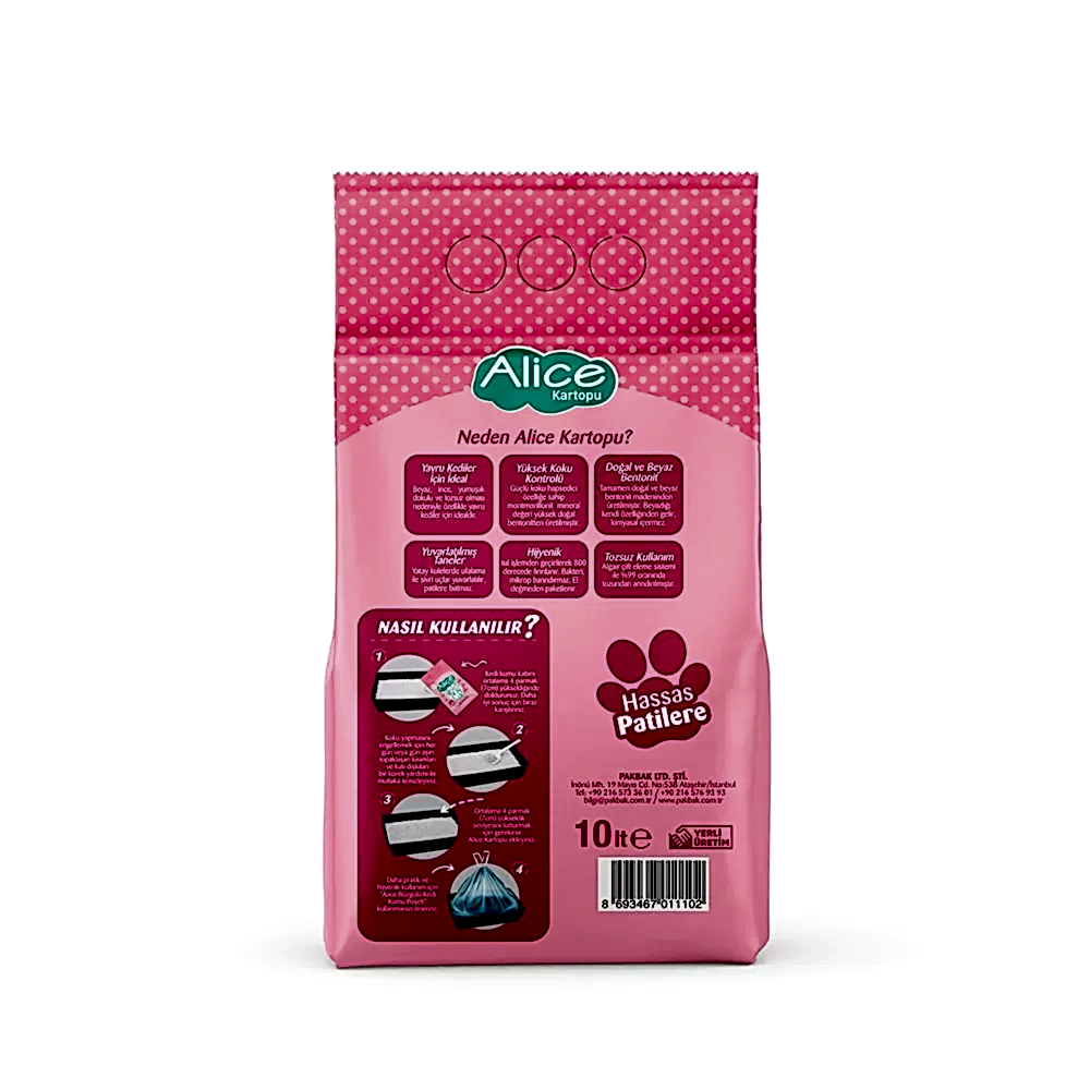 Alice Kartopu İnce Taneli Topaklaşan Pudra Kokulu Kedi Kumu Kullanma Talimatı: