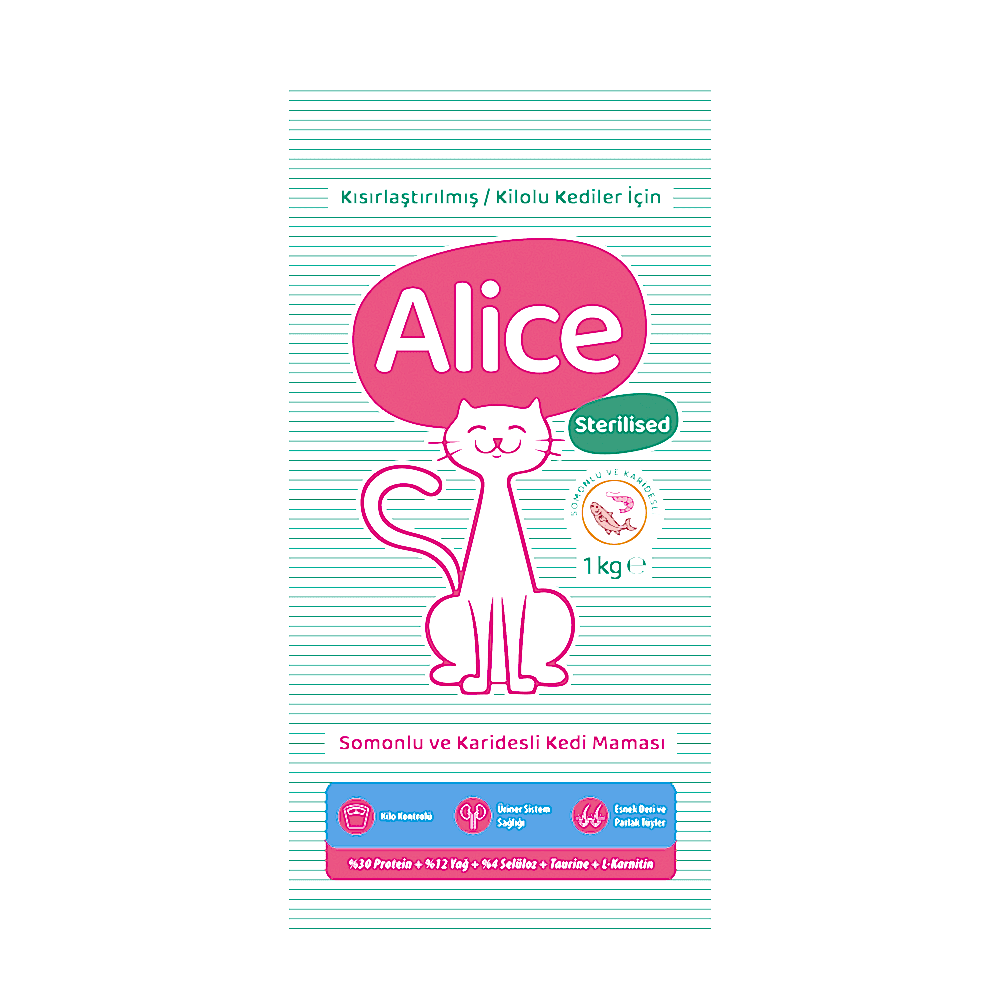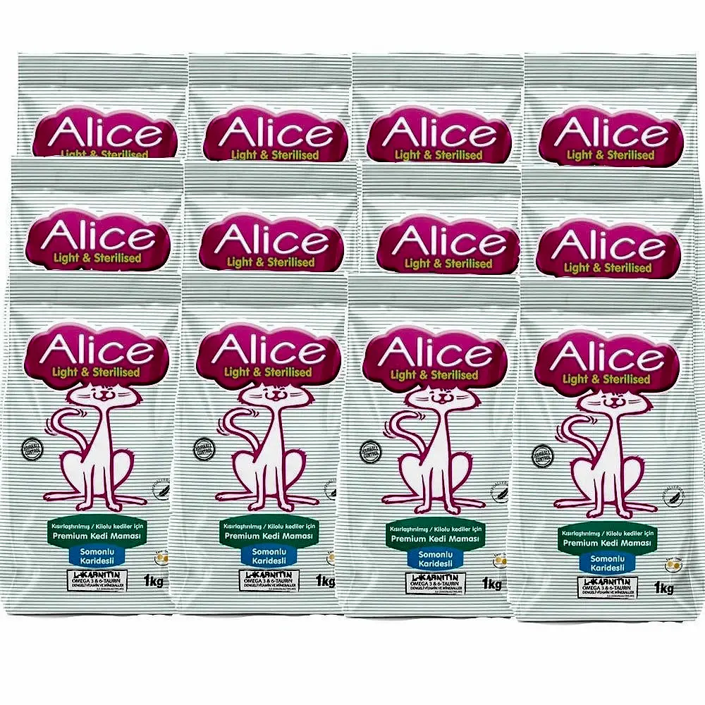 Alice Light & Sterilised – Kısırlaştırılmış / Kilolu Kediler İçin Super Premium Mama Somonlu Karidesli 12×1 kg