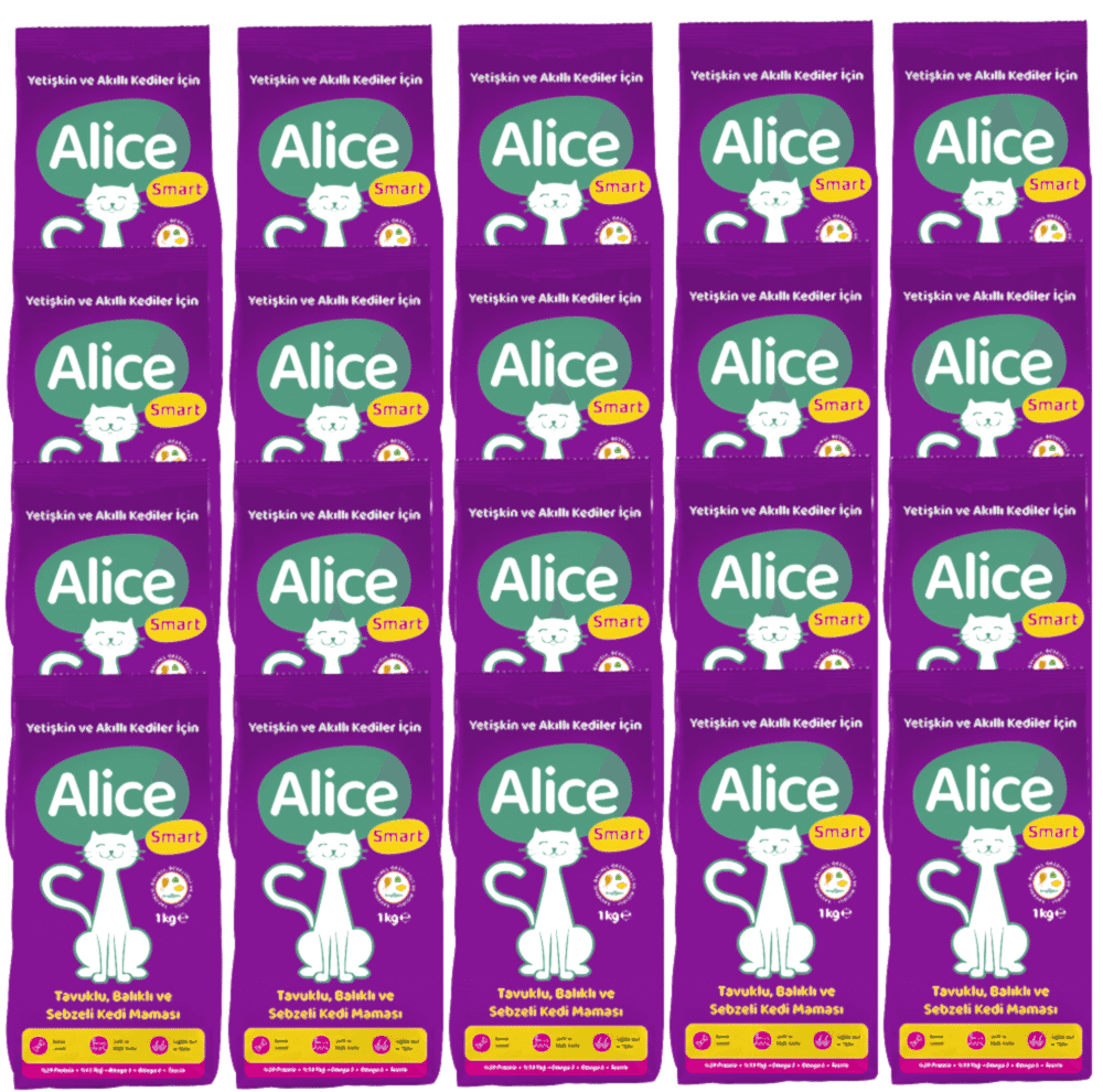 Alice Smart Balıklı, Tavuklu, Sebzeli Besleyici Kedi Maması 1 kg x 20 Adet Fırsatı !