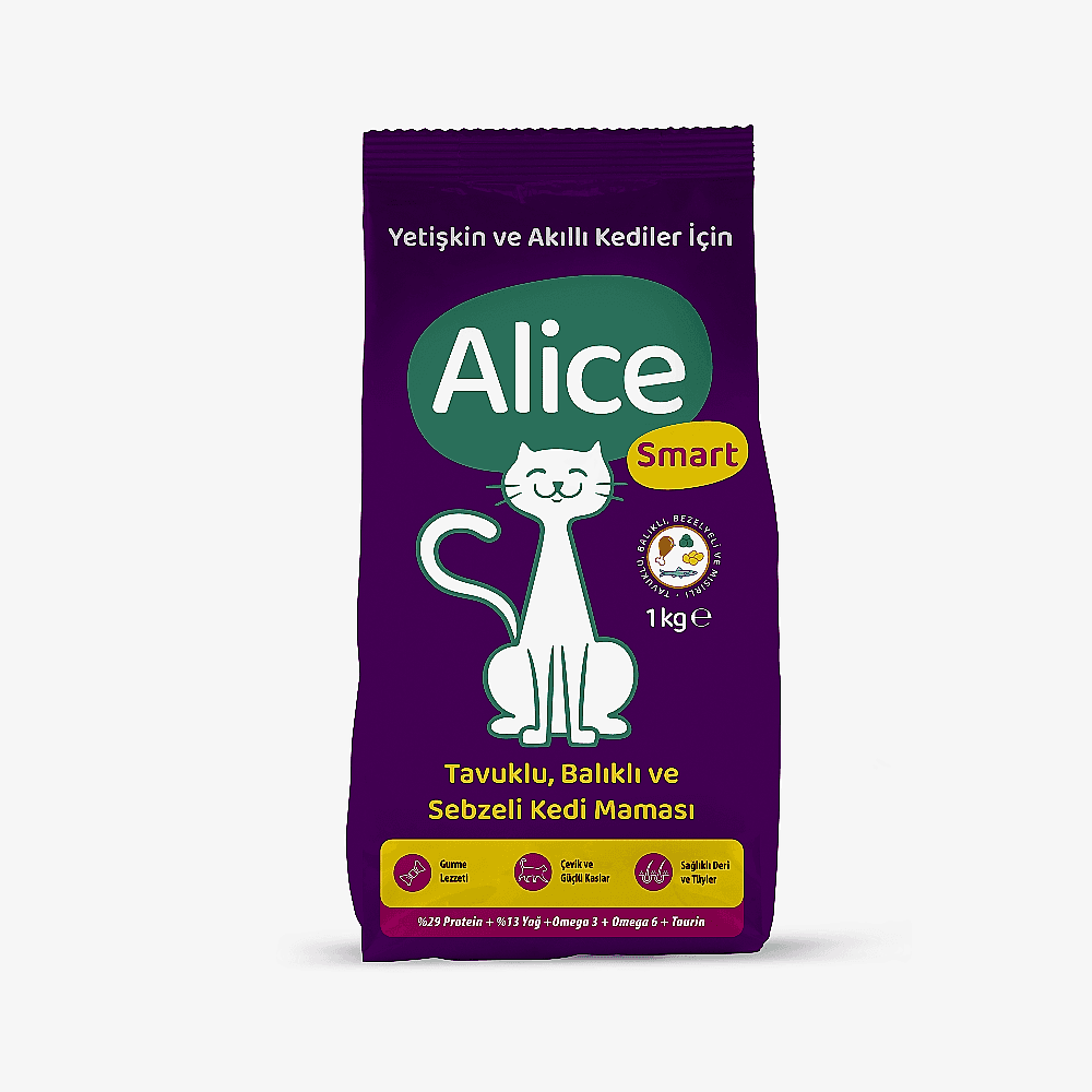 - Gurme lezzeti: Alice Snob gurme lezzetiyle zor beğenen kedilerin bile tercih ettiği bir mamadır. Tavuk ve balık tadı, tazeliği, uygun büyüklük ve tanecik yapısı ile kedilerin her zaman favorisidir.