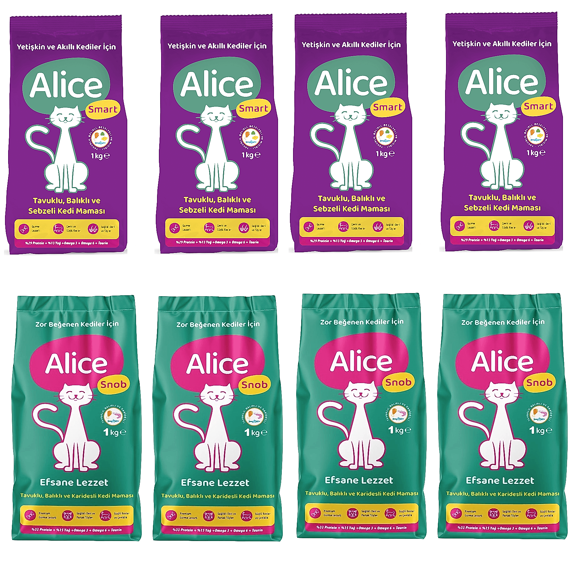 Alice Smart Kedi Maması 4×1 Kg ve Snob Kedi Maması 4×1 Kg