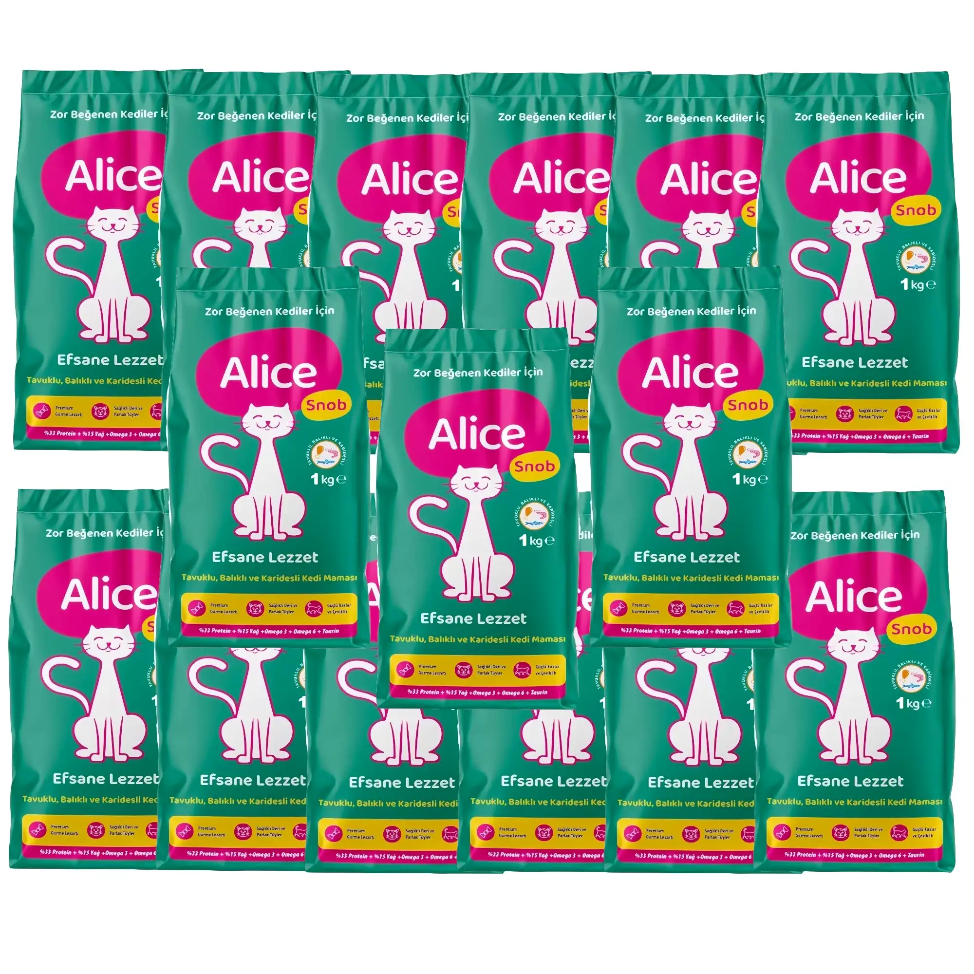 Alice Snob Kedi Maması 1kg x15 + Kedi Çimi Hediyeli