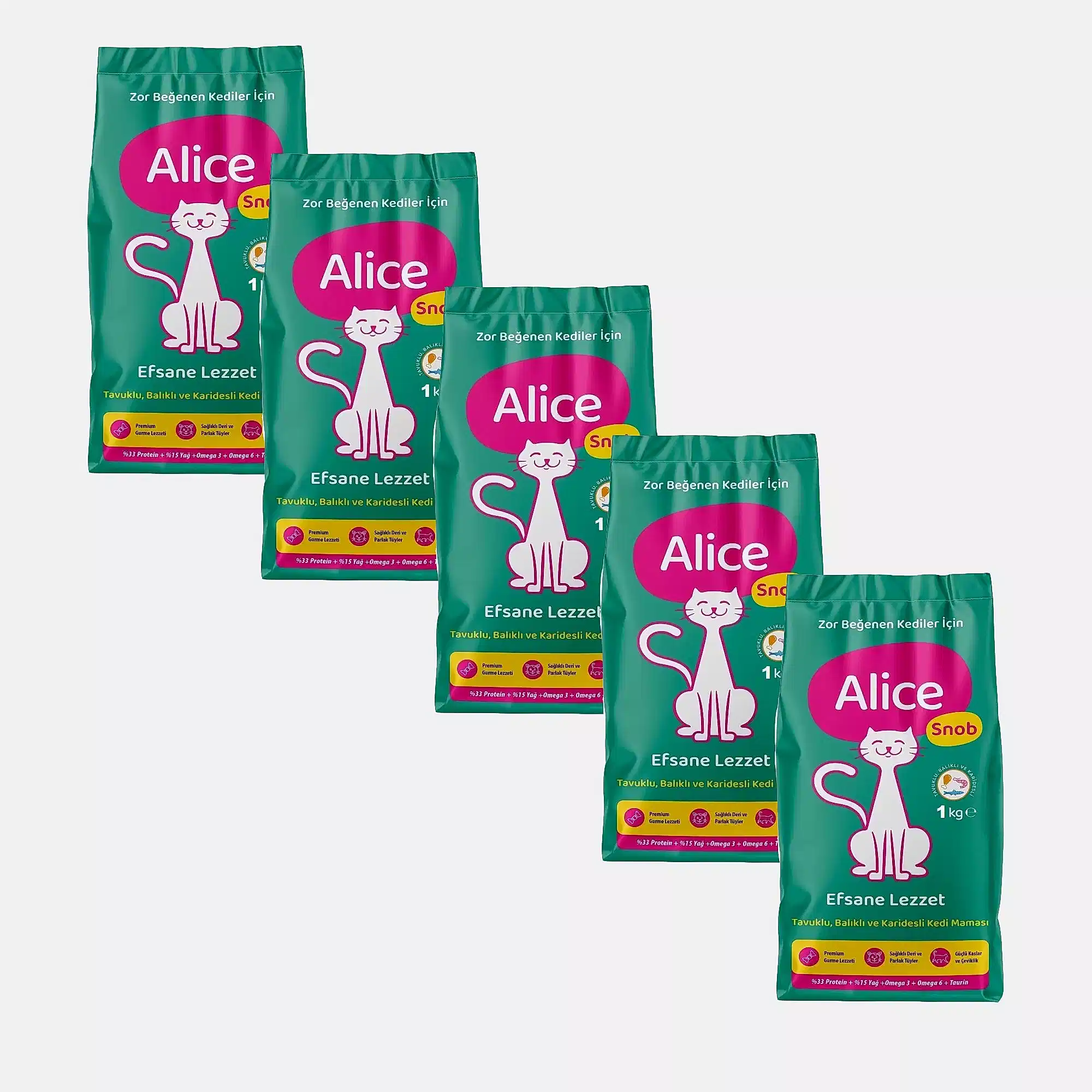 - Gurme lezzeti: Alice Snob gurme lezzetiyle zor beğenen kedilerin bile tercih ettiği bir mamadır. Tavuk ve balık tadı, tazeliği, uygun büyüklük ve tanecik yapısı ile kedilerin her zaman favorisidir.