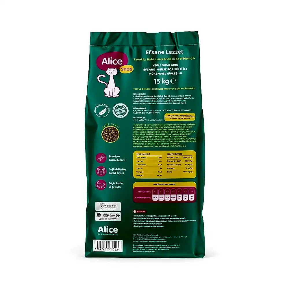 Alice Snob Kedi Maması Özellikleri: